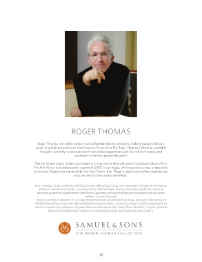 résidences connues et reconnues. Les produits de la collection Roger Thomas, disponibles auprès d’un réseau de