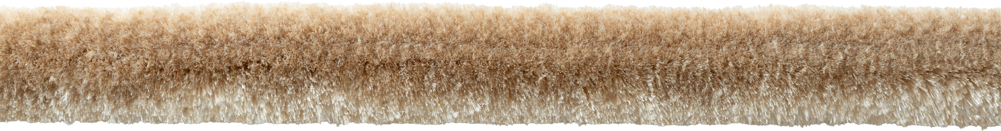 Calm and contemporary. The Aria Silk Brush Fringe in Ecru brings shimmer to a sculptural, asymmetrical sofa — its soft silk bloom catching the light and lending quiet elegance to the room’s serene palette.