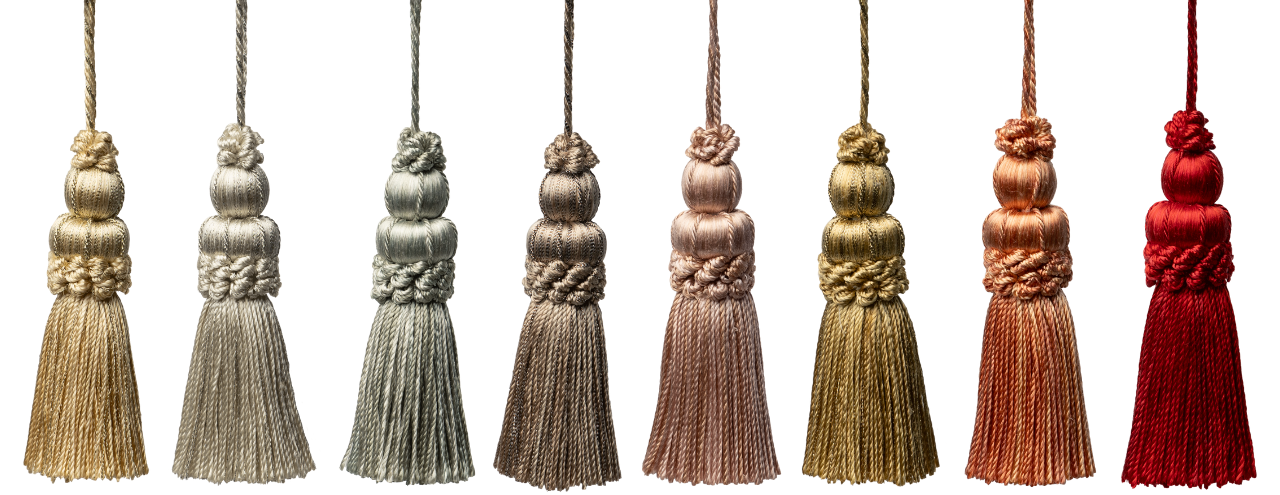 The delicately scaled Le Jardin Silk Key Tassel combines a sleek straight-yarn skirt with hand-wrapped molds, adorned with classically-inspired cording and ruche, available in over 60 elegant shades.