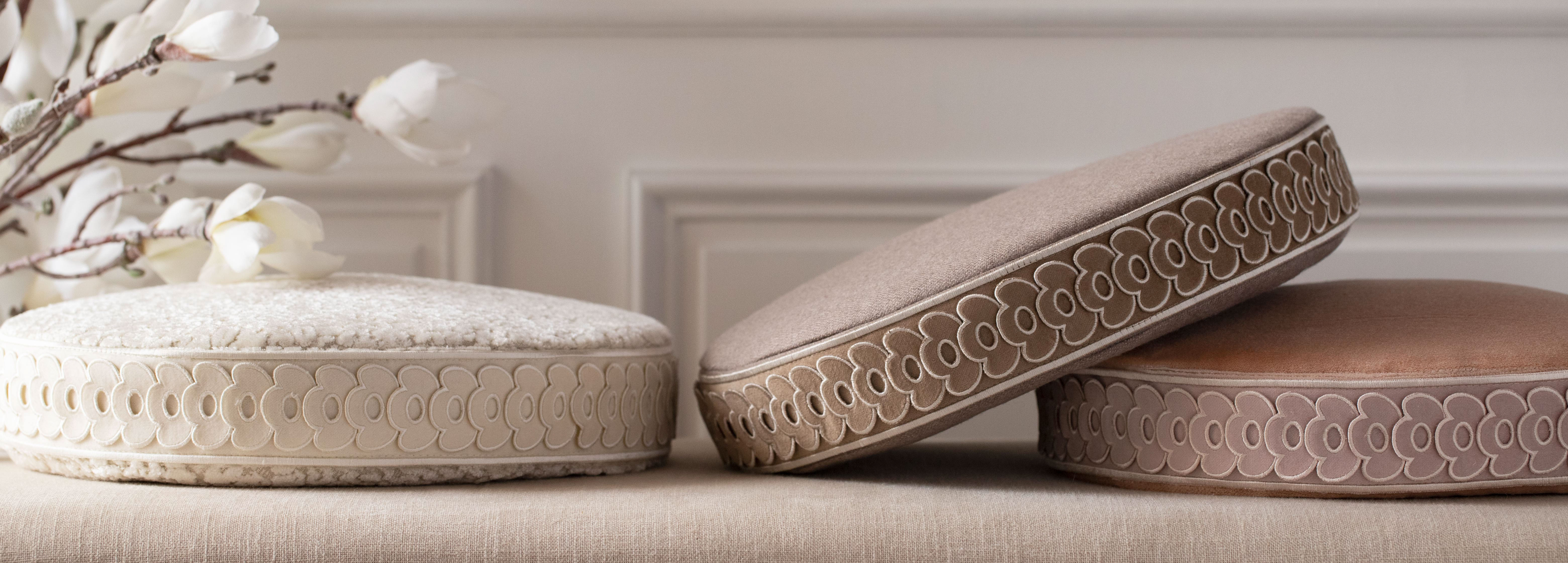 Venezia is a luxurious collection of passementerie inspired by the creative work Roger Thomas did while living in Venice. The patterns are interpretations of Roger’s sketches depicting details that inspired him while wandering through the churches, palaces, galleries and Biennale exhibitions near his home in Venice.
