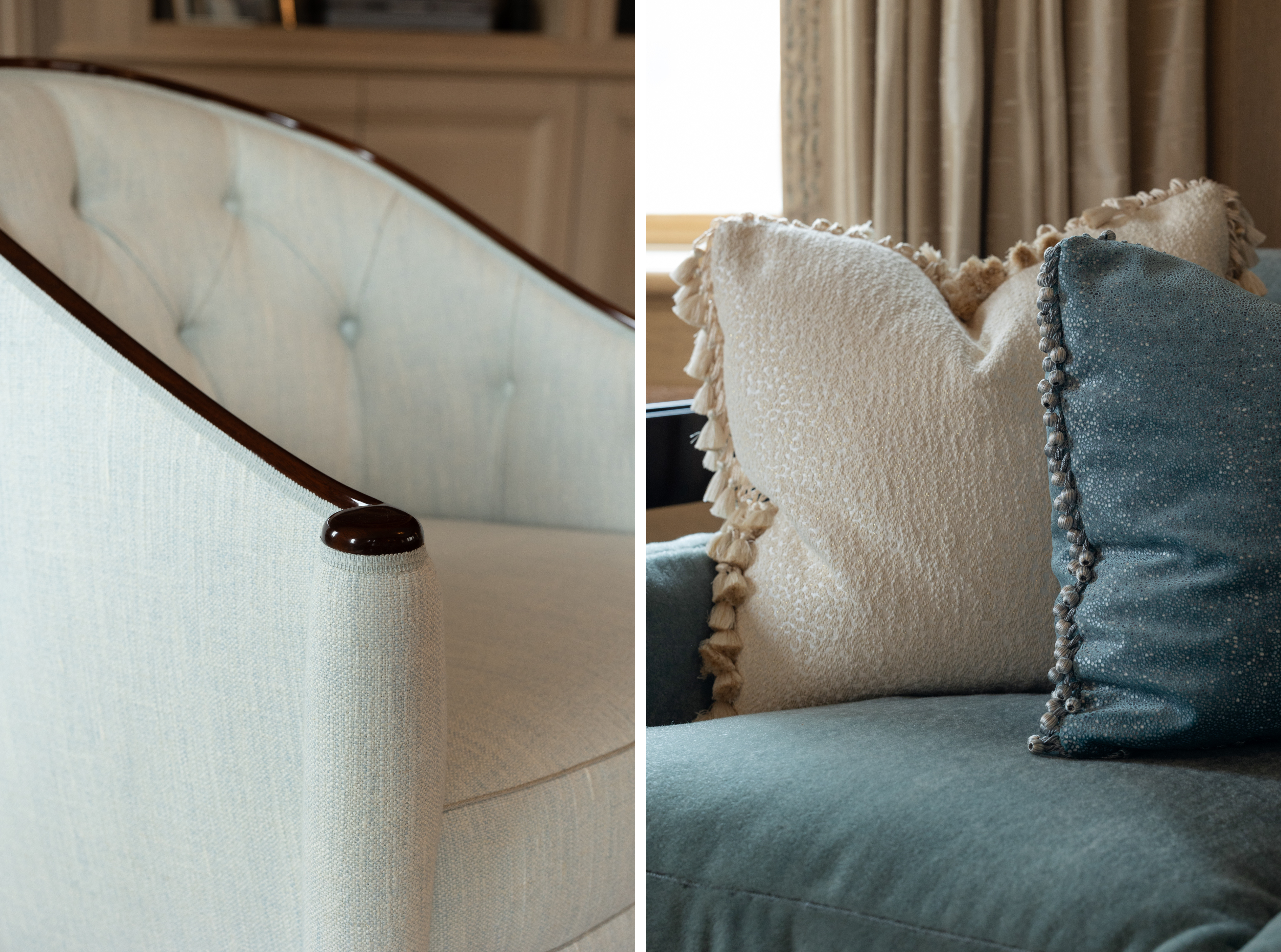 MS: I am often inspired by something that is stock. I am rarely content with the color and with the scale of it because I have a very specific point of view about pallet and scale, and because I’m laser focused on the many, many, many different details that contribute to these projects...it has to change because it’s got to make sense with the scale of the textile. It’s got to make sense with the scale of the frame of a chair, for example. In our collaborations over the years, there are a certain number of things that I bring to the table and there are a certain number of things that Samuel & Sons brings to the table. The Samuel & Sons team is fully capable of realizing the vision that we are going after and they land the plane every time.