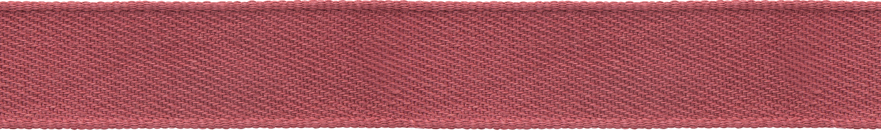 The Flanders Border in Raspberry adorns the leading edge of curtains in a moody blue bedroom.