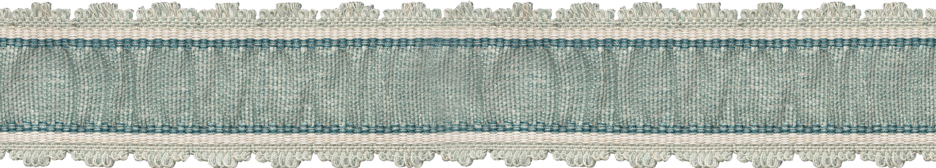 Drapery is defined by the Tiverton Pleated Border in Aqua in this stately dining room.