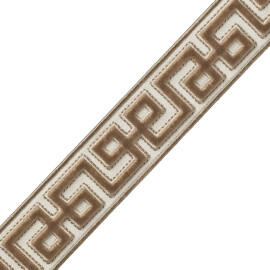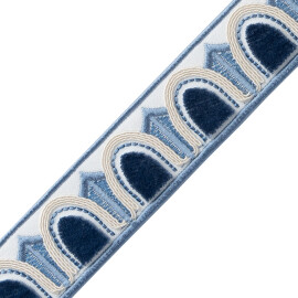 Des galons en velours dont les motifs contemporains s’expriment par des broderies raffinées et des applications de câblés.